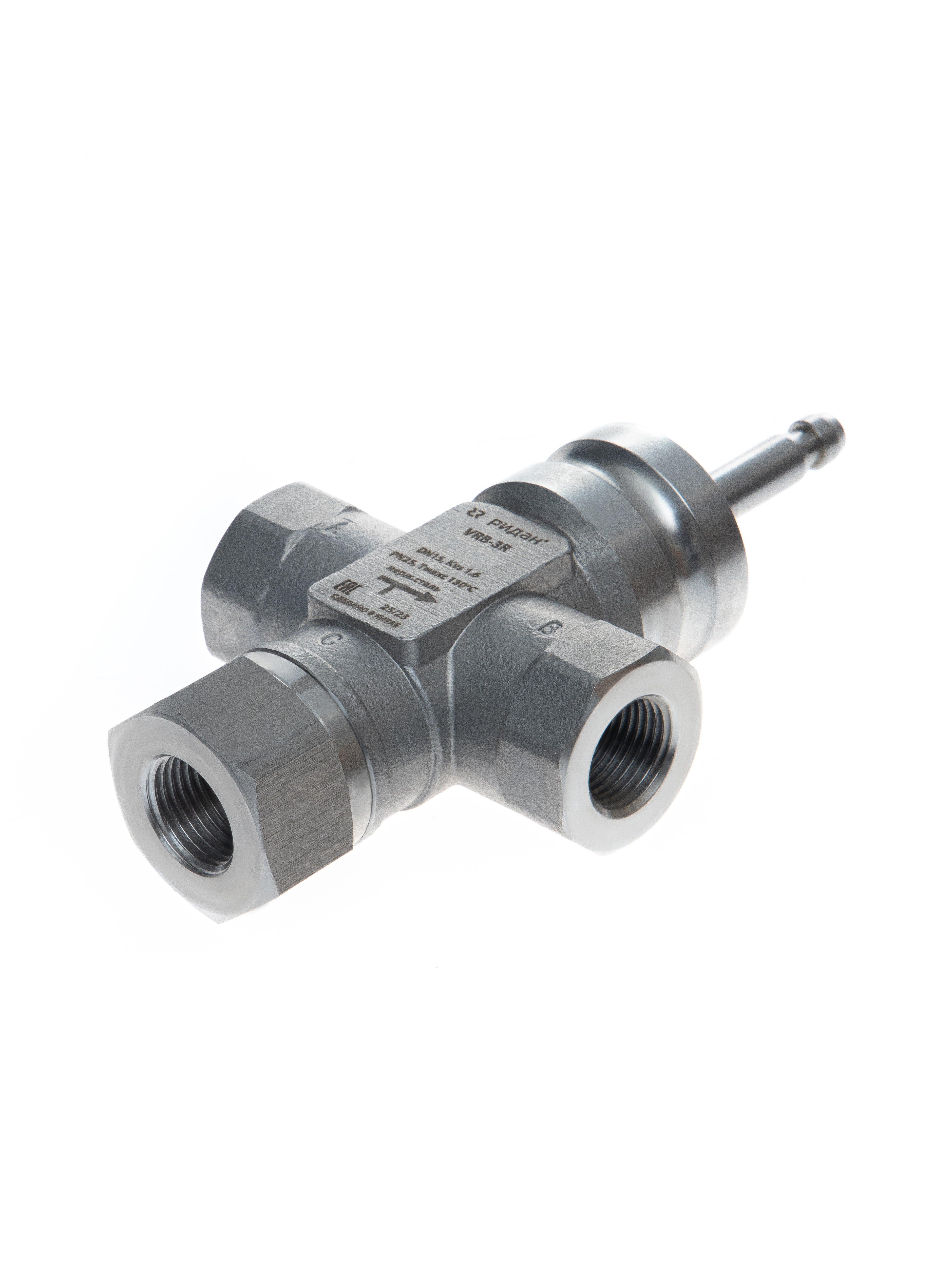 Ридан 065Z0215R — Клапан регулирующий с внутренней резьбой VRB-3R PN25, DN15, Kvs 4 м³/ч, трехходовой, седельный, внутренняя резьба, нержавеющая сталь