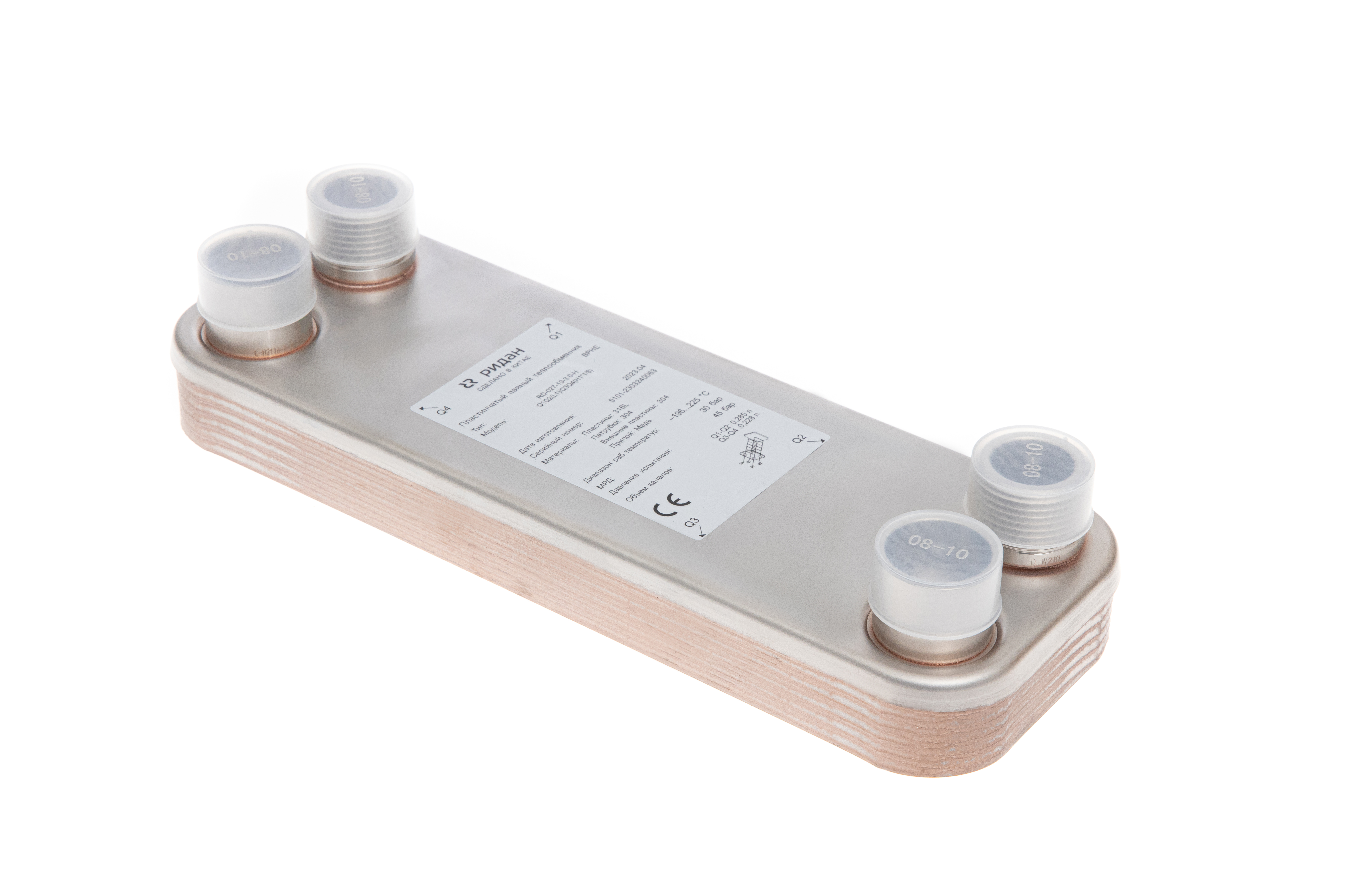 Ридан 111B0073R — Теплообменник пластинчатый паяный BPHE_RD-027-12-3.0-L, присоединительный штуцер Q1/Q2 — L1"1/4, Q3/Q4 — H1"3/8